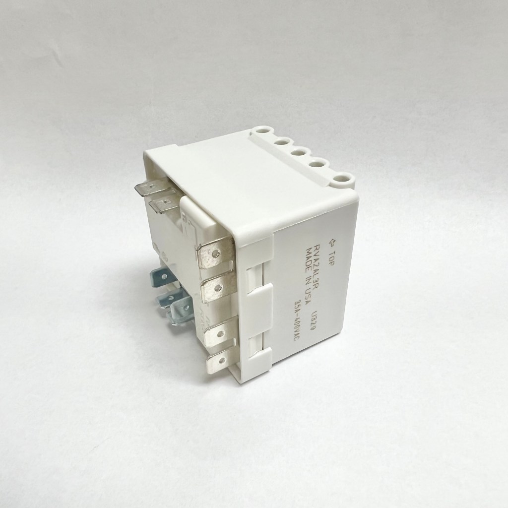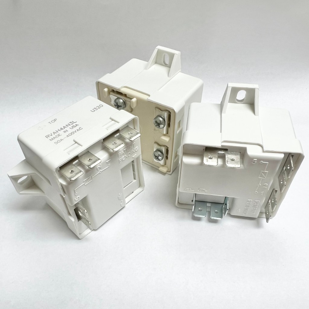 RVA, 35 amp and RVAH, 50 amp potential relays are designed for use with single-phase motors that use start and run capacitors (CSR and CSIR motor configurations), and other “high starting torque” motor applications. In these normally closed relays the coil is energized by the electrical potential of the start winding. When the voltage in the winding is raised to the pick-up value the relay contact will open and disconnect the start capacitor. The relay will remain energized until the voltage decreases to less than the drop-out voltage value. Typical applications include air conditioning and refrigeration compressor, heat pump, submersible pump and other hard start and high SEER product applications.